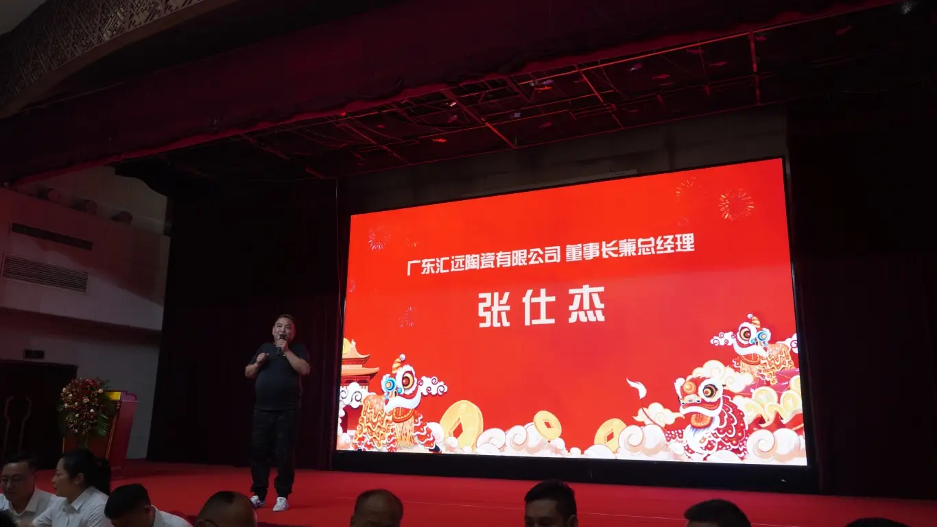 8.18中午在元氏元龙酒店宴请客户,座无虚席,广东汇远企业董事长兼总经理张仕杰发表讲话。多年来,汇远企业本着汇心聚力,诚信致远的理念,不断地推动陶瓷行业的发展,无论是产品的研发设计还是市场的开拓,汇远企业都走在一线。
